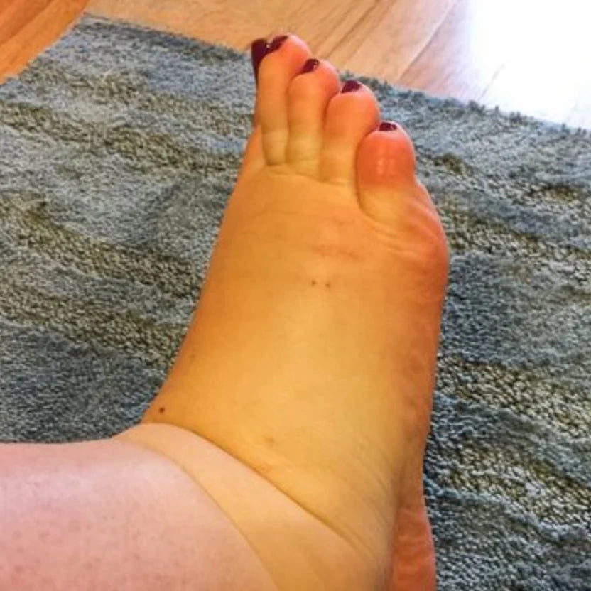 So instead of returning to your heart, this fluid accumulates in your tissues, causing swelling, a feeling of heaviness, and the “balloon foot” appearance.